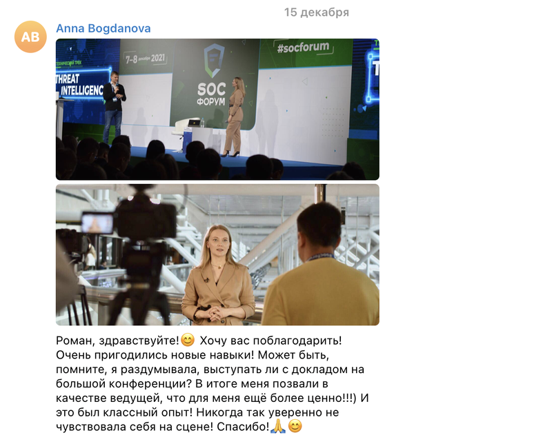 - ведет тренинги в "Газпроме", "Ростелекоме"